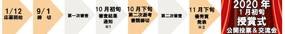 【スケジュール】応募期間:2019年1月12日(土)~9月1日(土) ![]() ※1)第一次審査の結果は、応募者のみなさまに直接メールにてご連絡いたします。 他薦でのご応募の場合は、通過した場合のみイベント主催者側へ協会より直接ご連絡させていただきます。 ※2)第二次審査の結果(優秀賞の発表)は、メールでの連絡とホームページで発表いたします。 ※3)授賞式は一般公開にてどなたでもご入場が可能です。 優秀賞者によるプレゼンテーションをご覧のうえ、最優秀賞選考のための公開投票へご参加いただけます。 また、交流会等の情報交換の場などもご用意する予定ですので、ぜひお誘いあわせのうえご参加ください。 日時:2020年1月上旬予定 ※詳細は決定次第ホームページにてご案内してまいります。 会場:国立オリンピック記念青少年総合センター <住 所>〒151-0052 東京都渋谷区代々木神園町3-1 <交 通>小田急線 各駅停車「参宮橋駅」徒歩約7 分 |